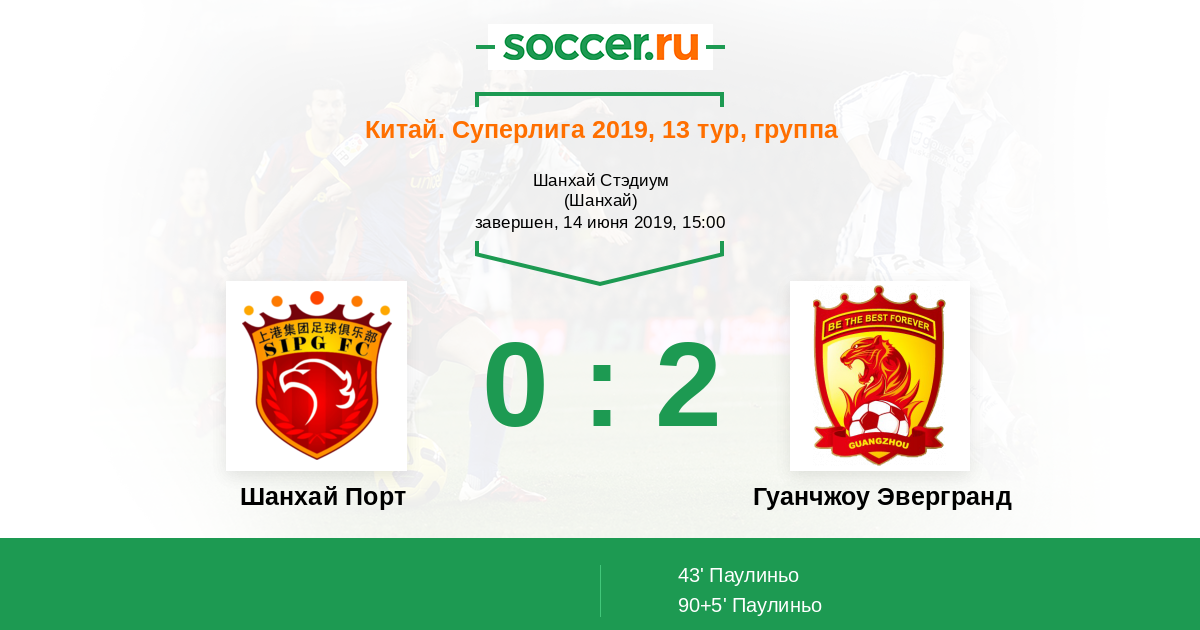 Протокол матча Шанхай Порт против Гуанчжоу Эвергранд