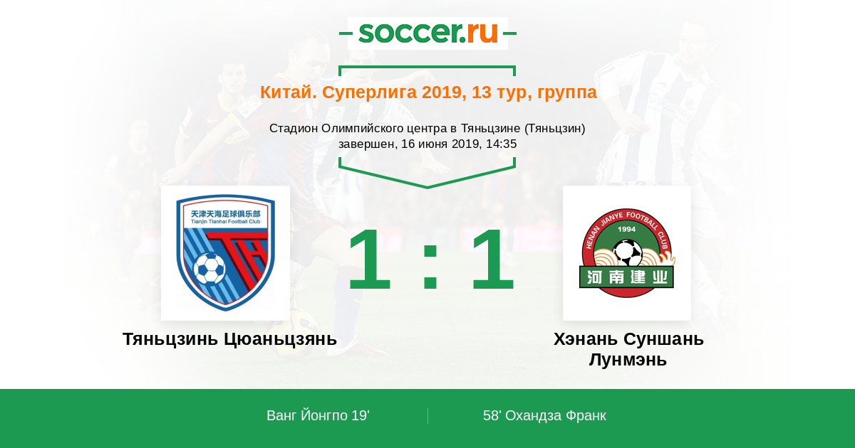 Протокол матча Тяньцзинь Цюаньцзянь против Хэнань Суншань Лунмэнь