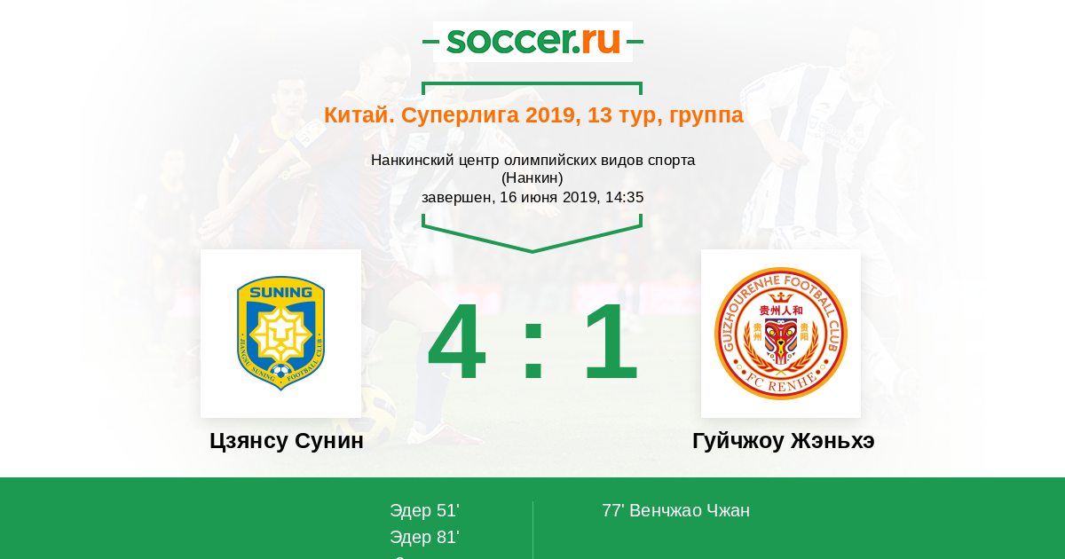 Протокол матча Цзянсу Сунин против Гуйчжоу Жэньхэ