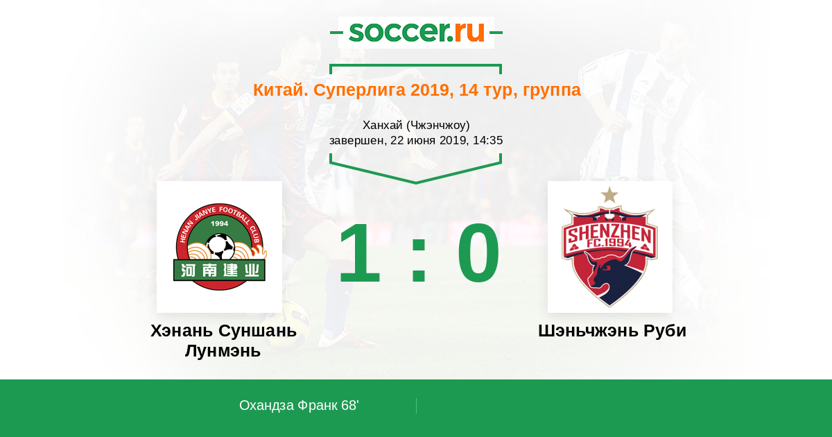 Протокол матча Хэнань Суншань Лунмэнь против Шэньчжэнь Руби