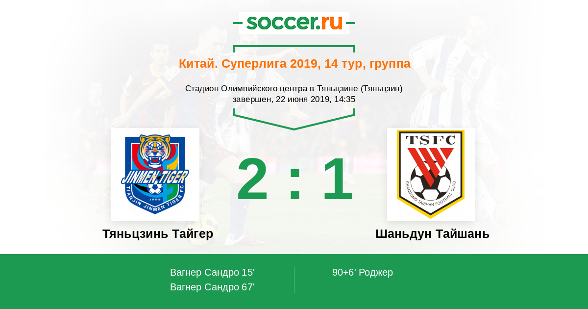 Протокол матча Тяньцзинь Тайгер против Шаньдун Тайшань