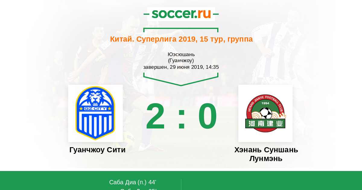 Протокол матча Гуанчжоу Сити против Хэнань Суншань Лунмэнь