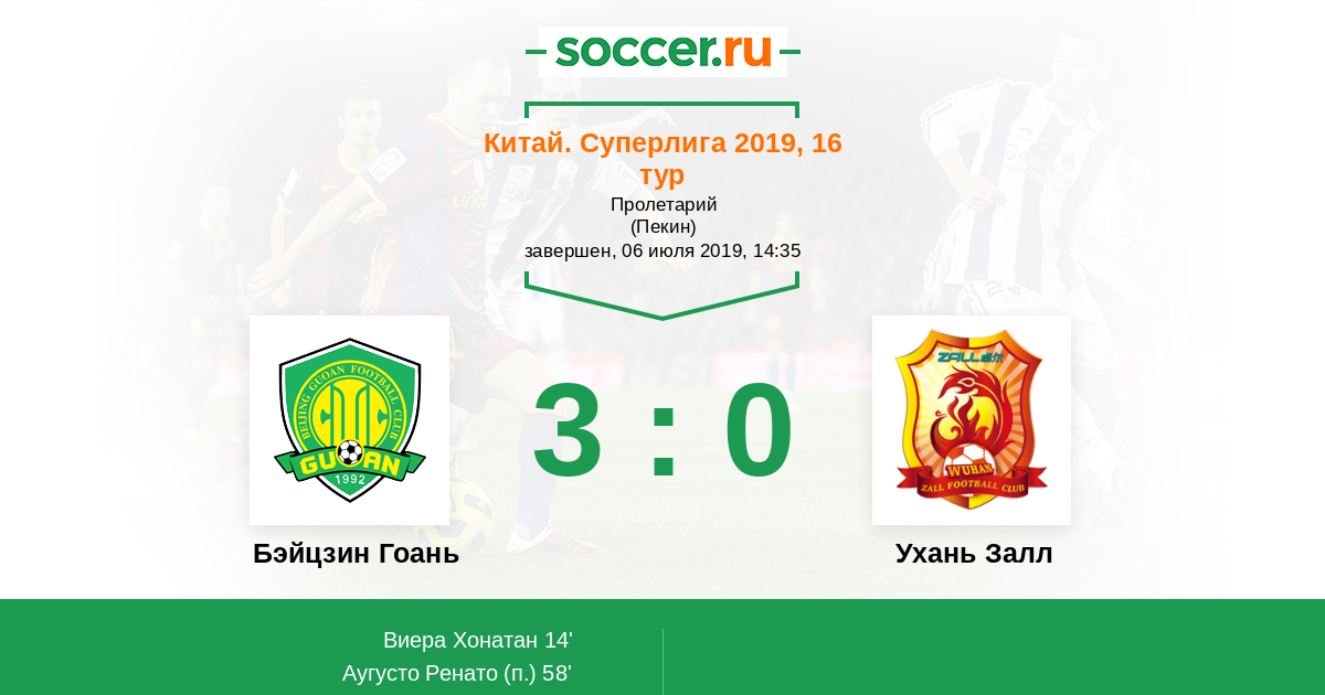 Протокол матча Бэйцзин Гоань против Ухань Залл