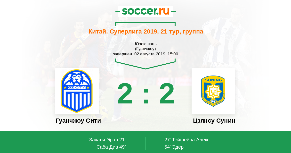Протокол матча Гуанчжоу Сити против Цзянсу Сунин