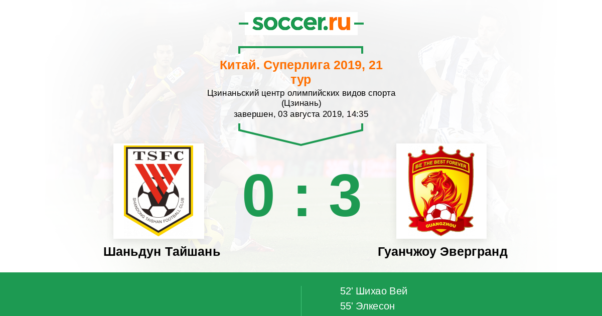 Протокол матча Шаньдун Тайшань против Гуанчжоу Эвергранд