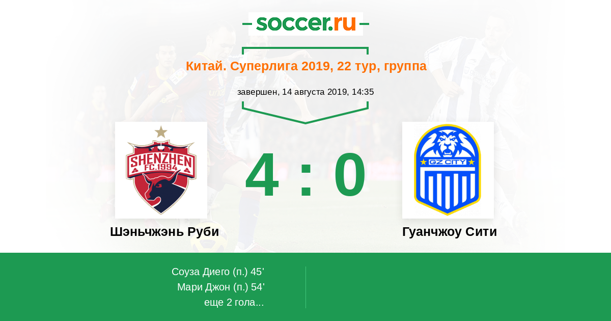 Протокол матча Шэньчжэнь Руби против Гуанчжоу Сити