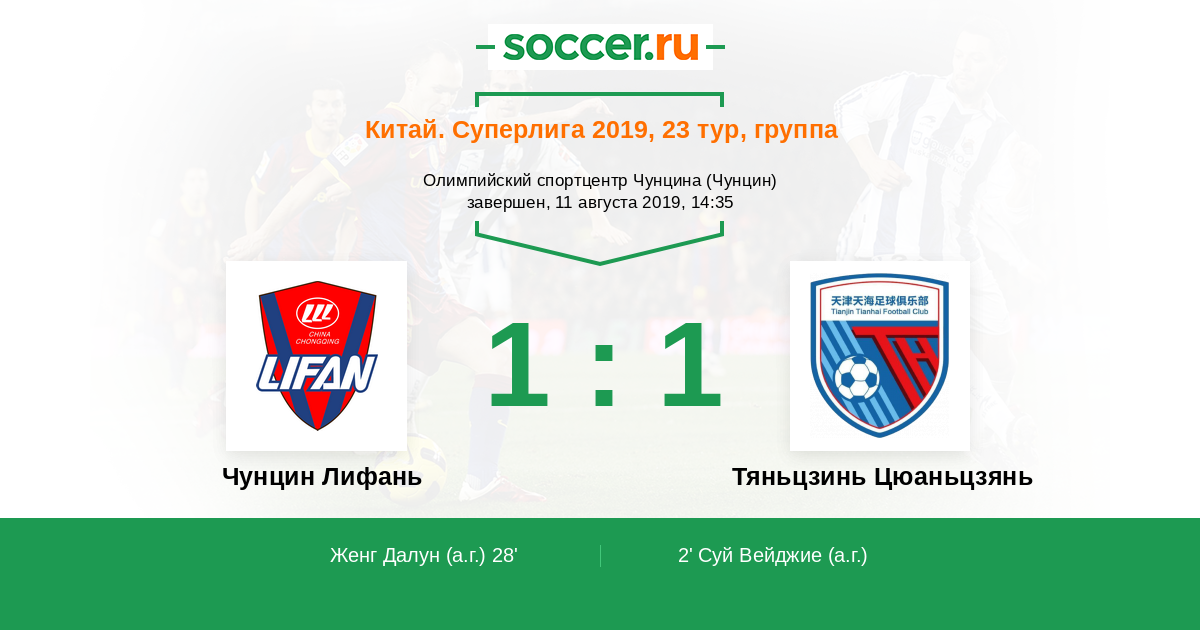 Протокол матча Чунцин Лифань против Тяньцзинь Цюаньцзянь