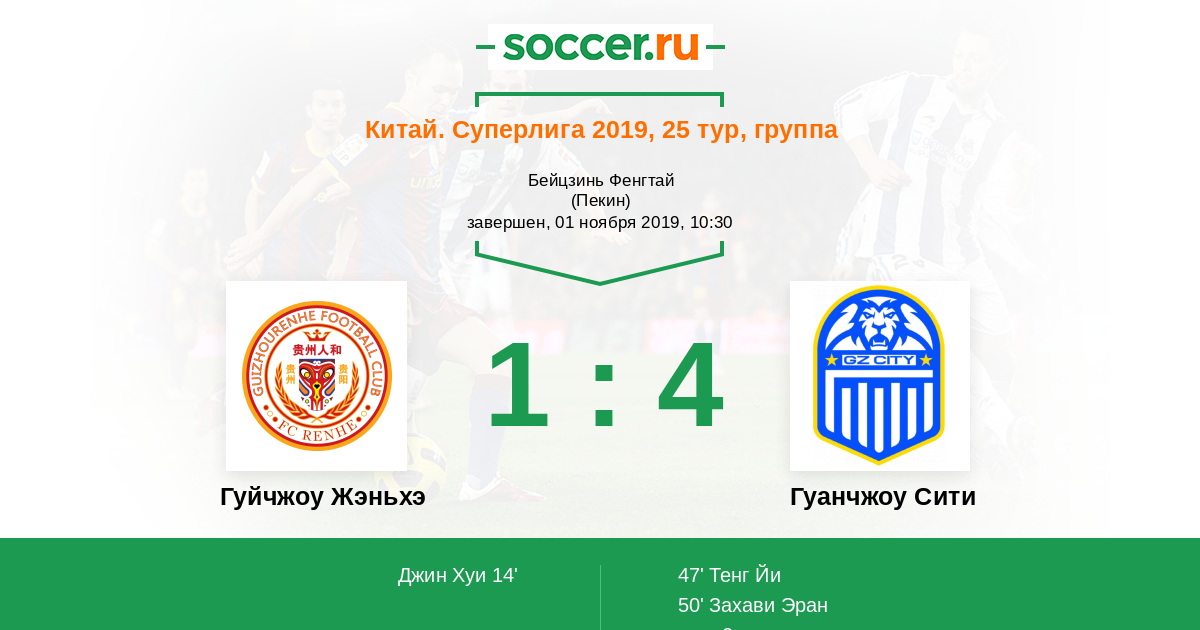 Протокол матча Гуйчжоу Жэньхэ против Гуанчжоу Сити