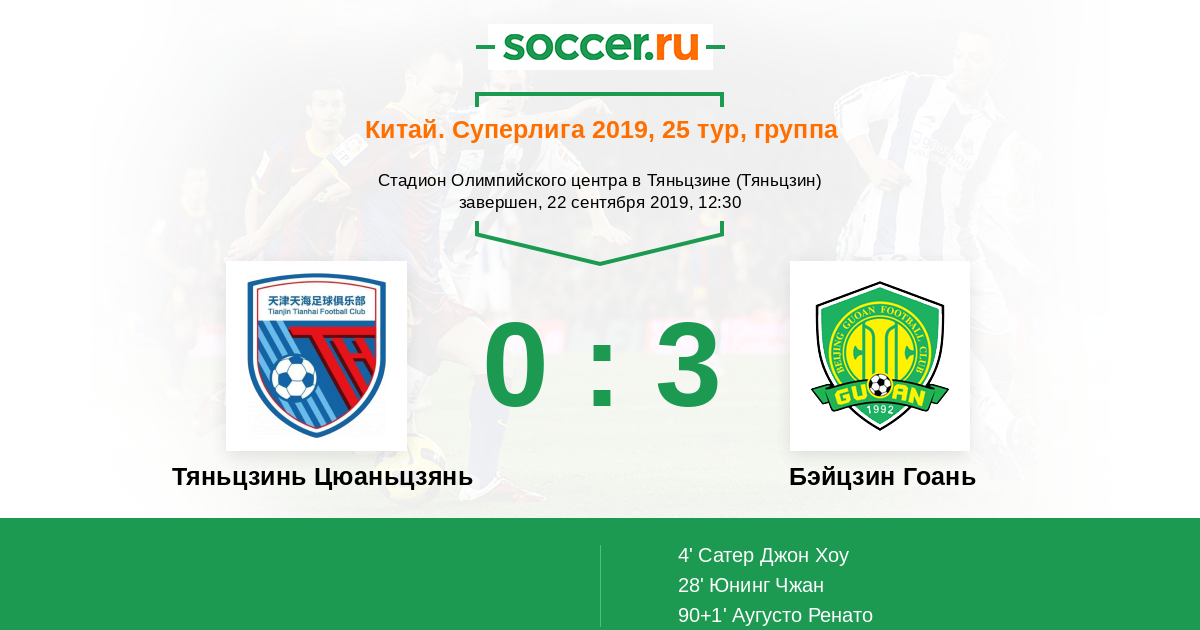 Протокол матча Тяньцзинь Цюаньцзянь против Бэйцзин Гоань