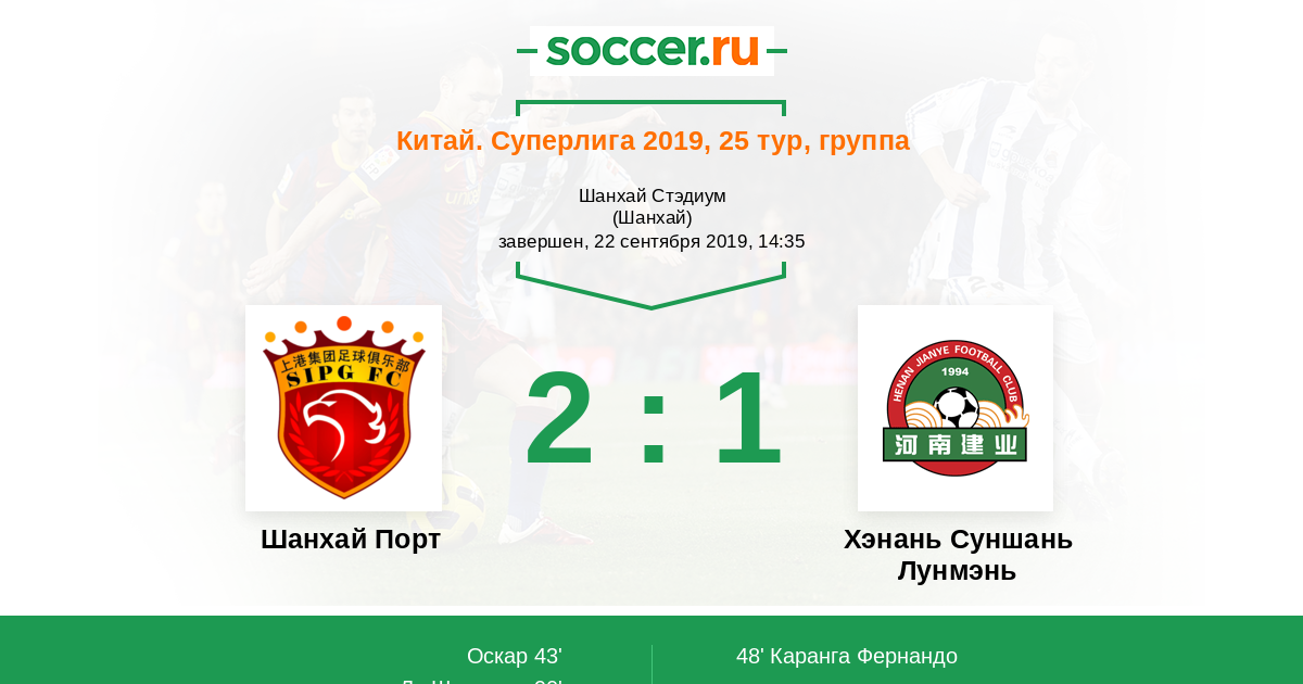Протокол матча Шанхай Порт против Хэнань Суншань Лунмэнь