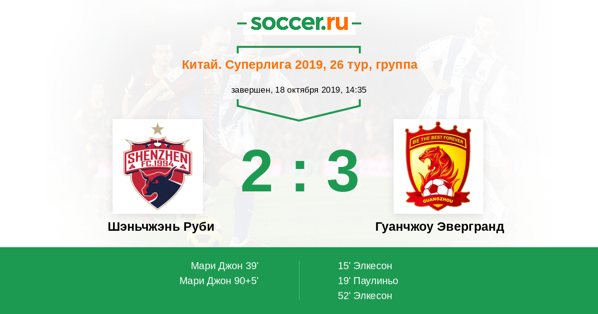 Протокол матча Шэньчжэнь Руби против Гуанчжоу Эвергранд