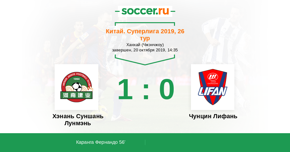 Протокол матча Хэнань Суншань Лунмэнь против Чунцин Лифань