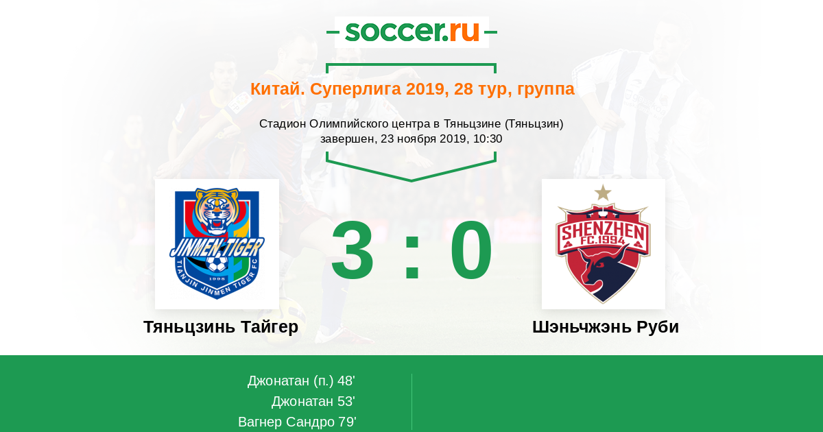 Протокол матча Тяньцзинь Тайгер против Шэньчжэнь Руби