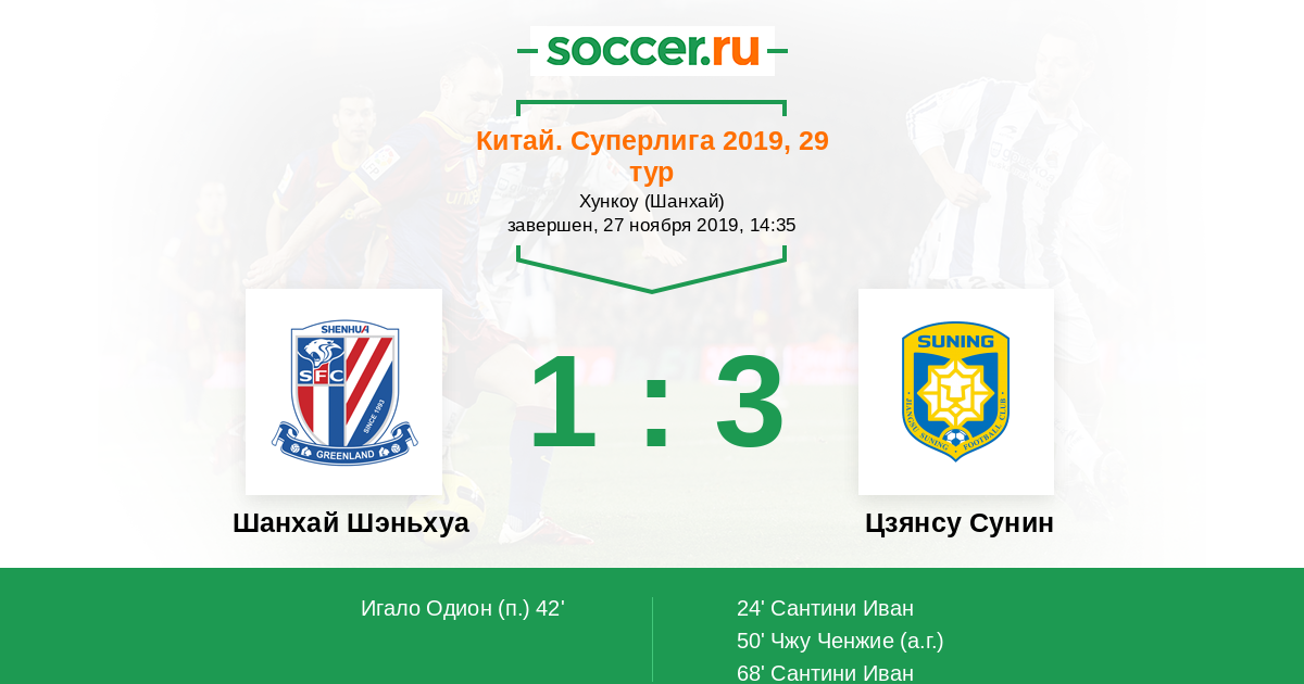 Протокол матча Шанхай Шэньхуа против Цзянсу Сунин