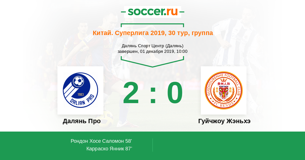Протокол матча Далянь Про против Гуйчжоу Жэньхэ