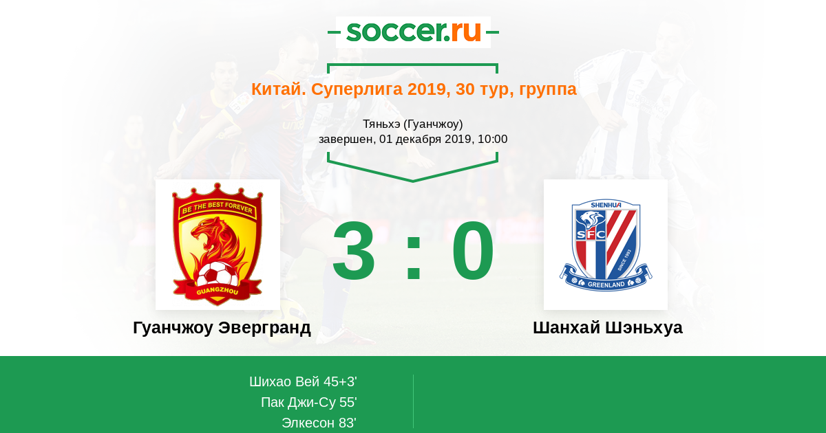 Протокол матча Гуанчжоу Эвергранд против Шанхай Шэньхуа