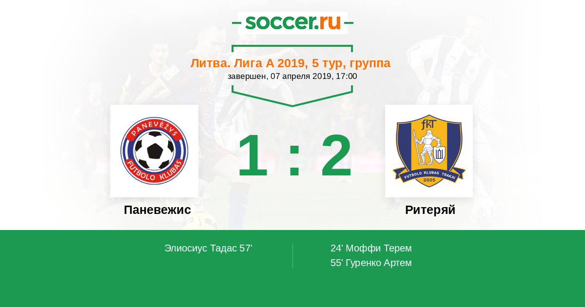 Протокол матча Паневежис против Ритеряй