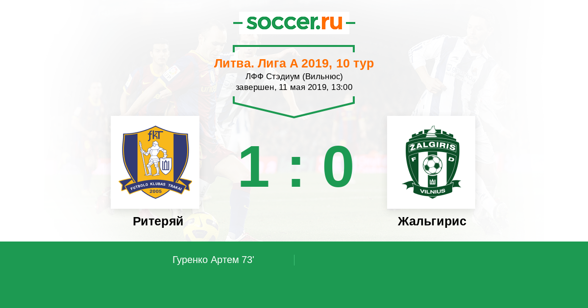Протокол матча Ритеряй против Жальгирис
