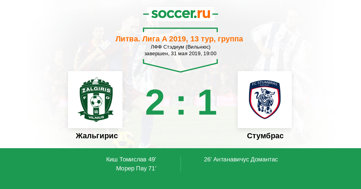 Протокол матча Жальгирис против Стумбрас