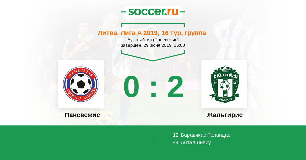 Протокол матча Паневежис против Жальгирис