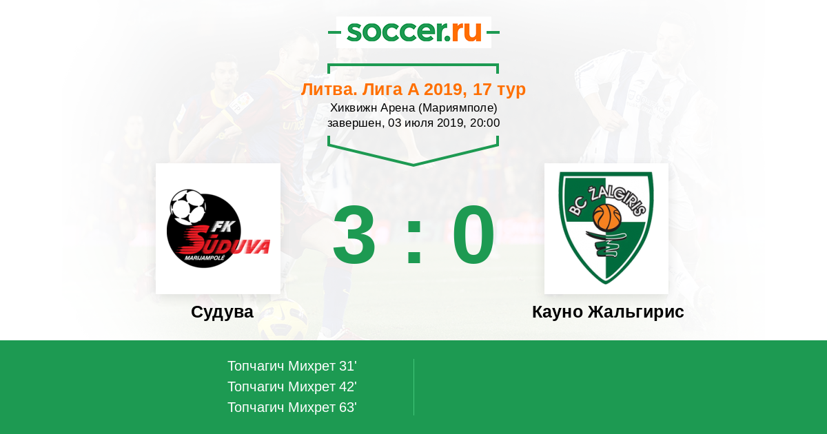 Протокол матча Судува против Кауно Жальгирис