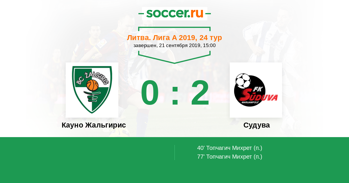 Протокол матча Кауно Жальгирис против Судува