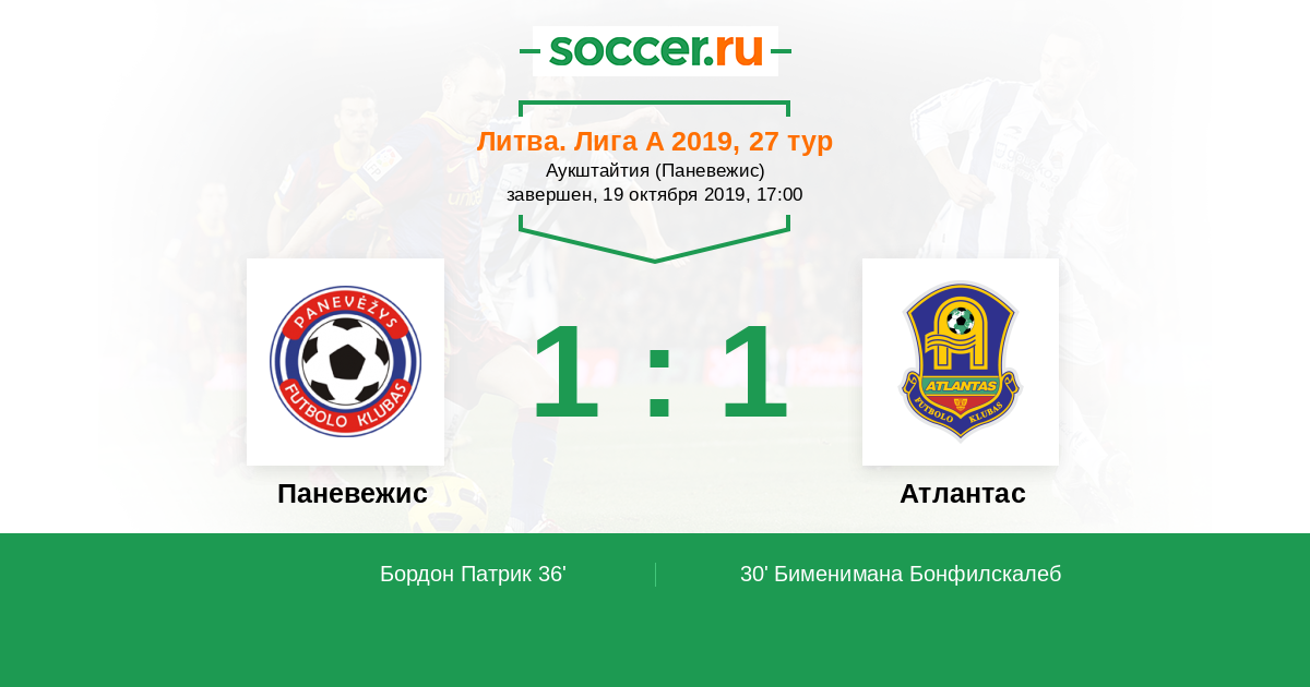 Протокол матча Паневежис против Атлантас