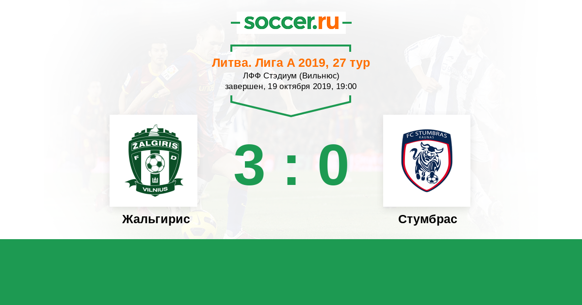 Литва. Лига А 31.10.2018 Жальгирис Логотип футбольный клуб Жальгирис (Вильнюс) 2:0 Логотип футбольный клуб Стумбрас (Каунас) Стумбрас