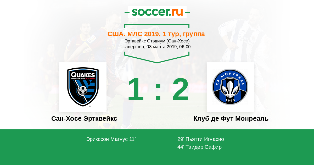 Протокол матча Сан-Хосе Эртквейкс против Клуб де Фут Монреаль