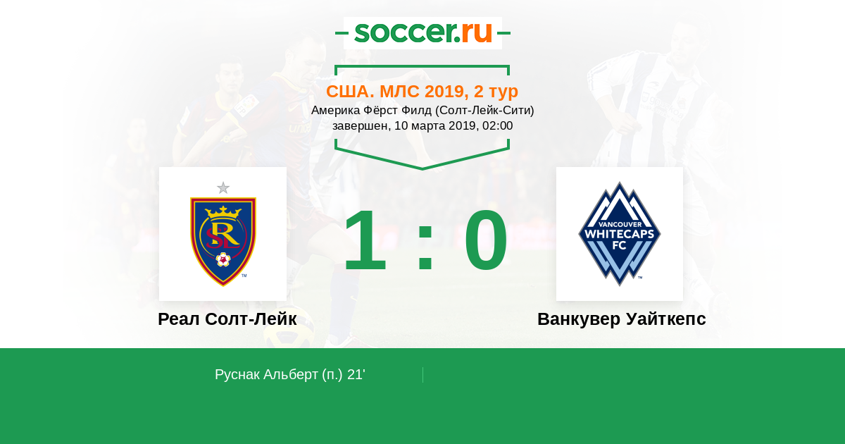 Протокол матча Реал Солт-Лейк против Ванкувер Уайткепс