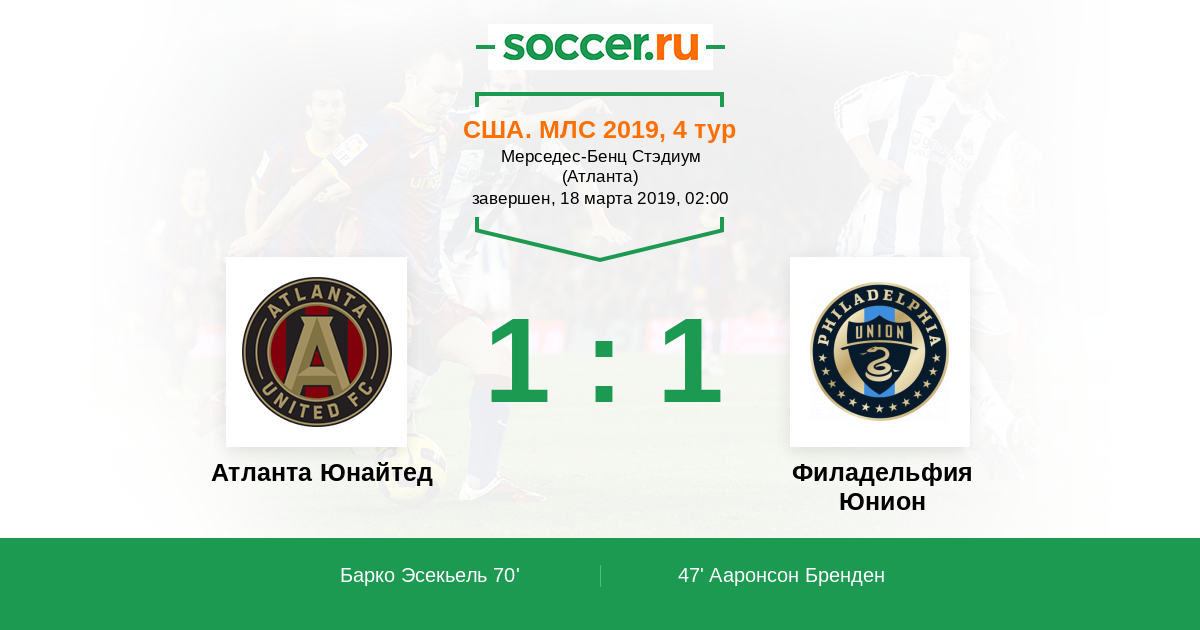 Протокол матча Атланта Юнайтед против Филадельфия Юнион
