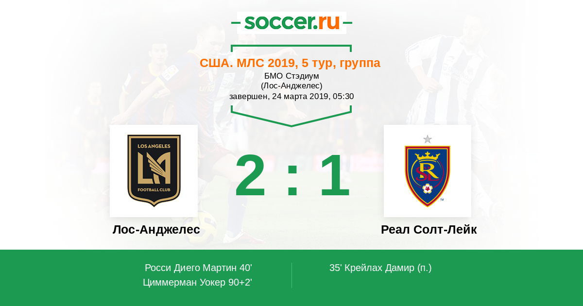 Протокол матча Лос-Анджелес против Реал Солт-Лейк
