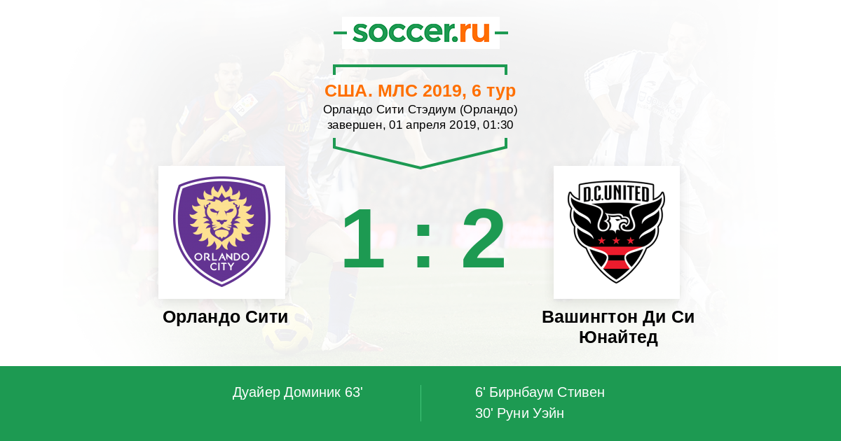 Протокол матча Орландо Сити против Вашингтон Ди Си Юнайтед