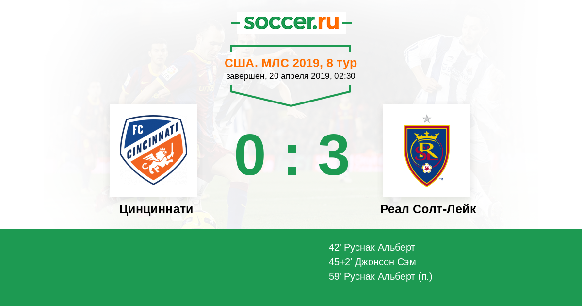 Протокол матча Цинциннати против Реал Солт-Лейк