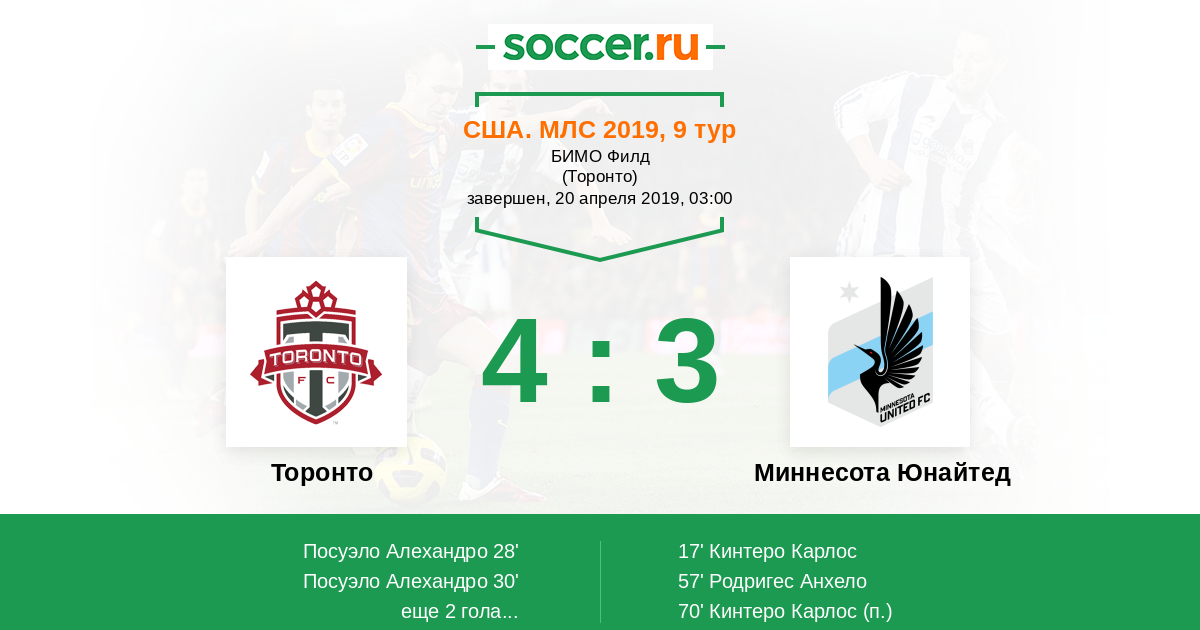 Протокол матча Торонто против Миннесота Юнайтед