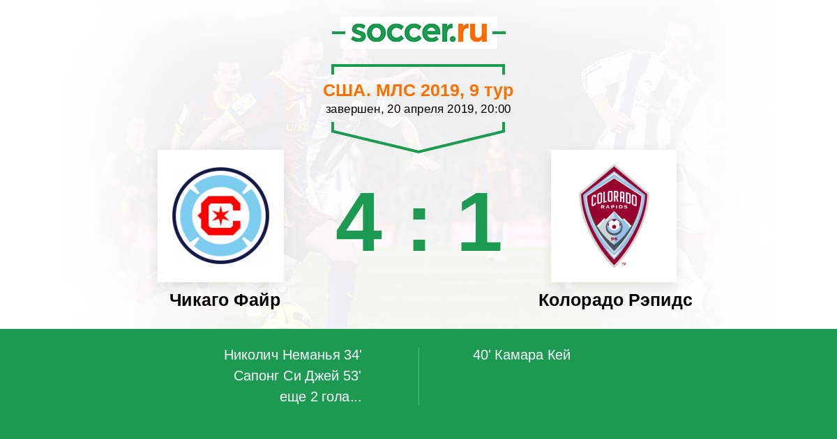 Протокол матча Чикаго Файр против Колорадо Рэпидс