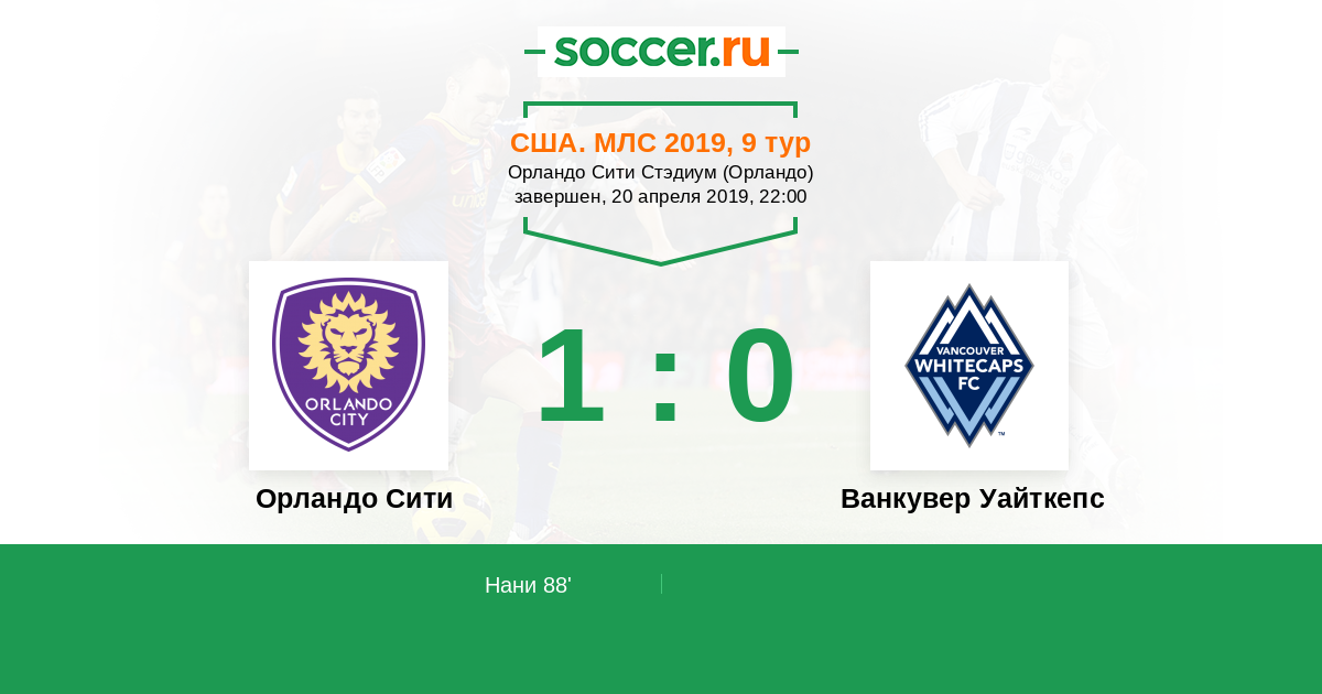 Протокол матча Орландо Сити против Ванкувер Уайткепс