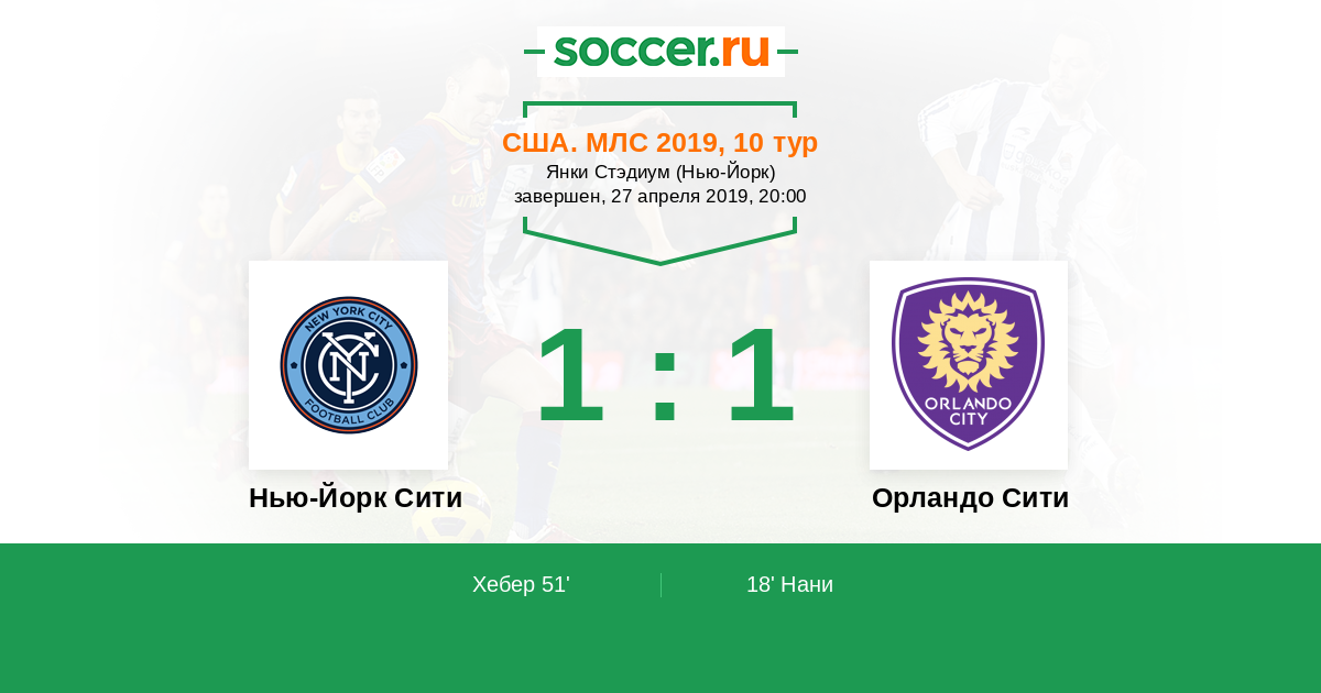 Протокол матча Нью-Йорк Сити против Орландо Сити