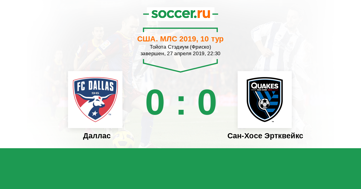 Протокол матча Даллас против Сан-Хосе Эртквейкс