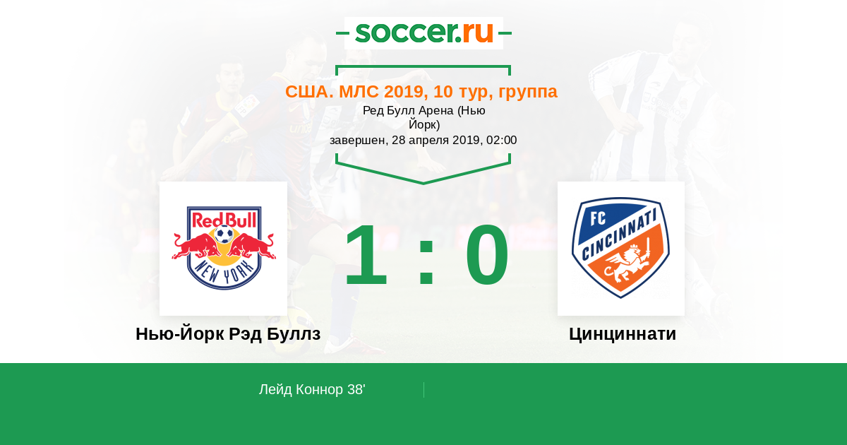 Протокол матча Нью-Йорк Рэд Буллз против Цинциннати