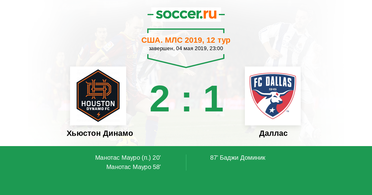Протокол матча Хьюстон Динамо против Даллас