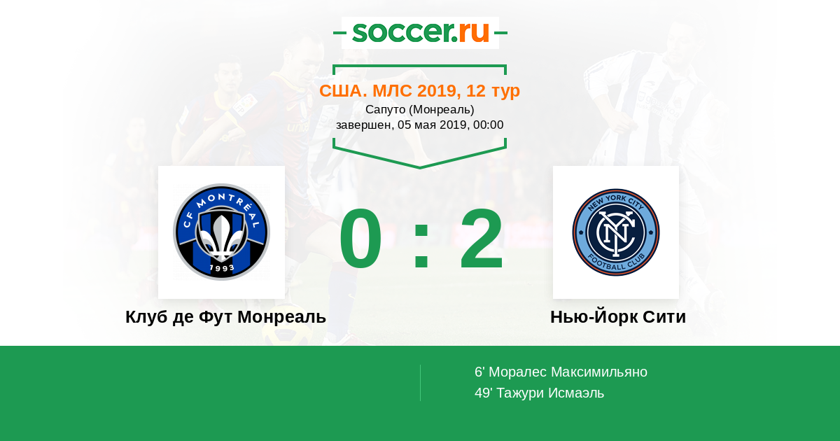 Протокол матча Клуб де Фут Монреаль против Нью-Йорк Сити
