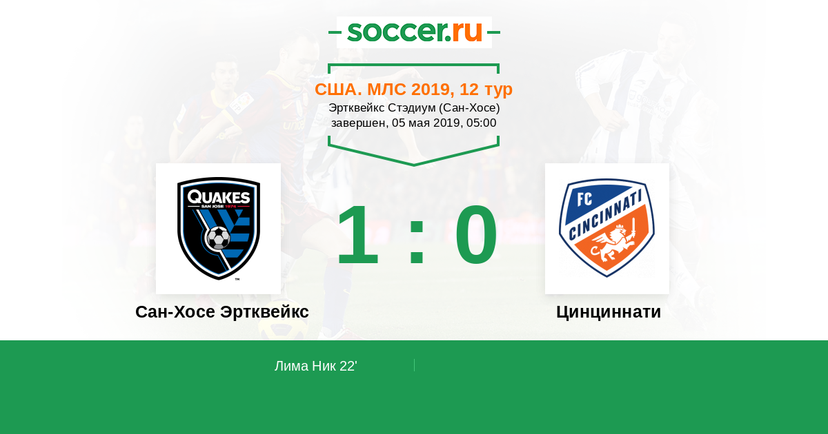 Протокол матча Сан-Хосе Эртквейкс против Цинциннати
