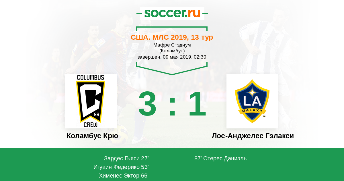 Протокол матча Коламбус Крю против Лос-Анджелес Гэлакси