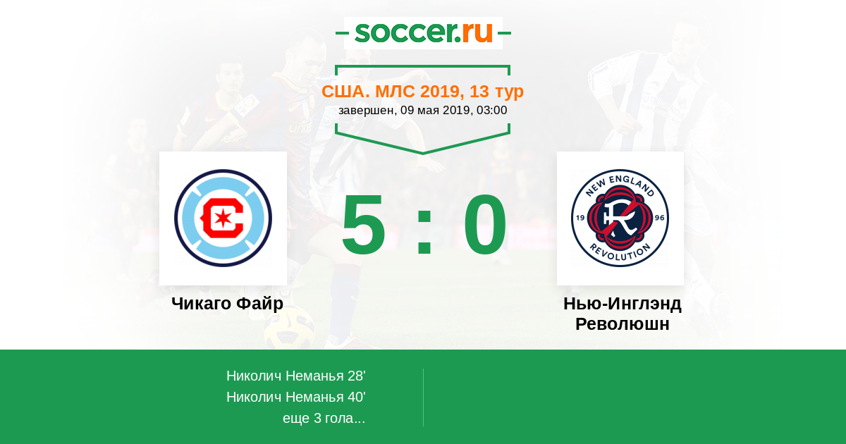 Протокол матча Чикаго Файр против Нью-Инглэнд Революшн