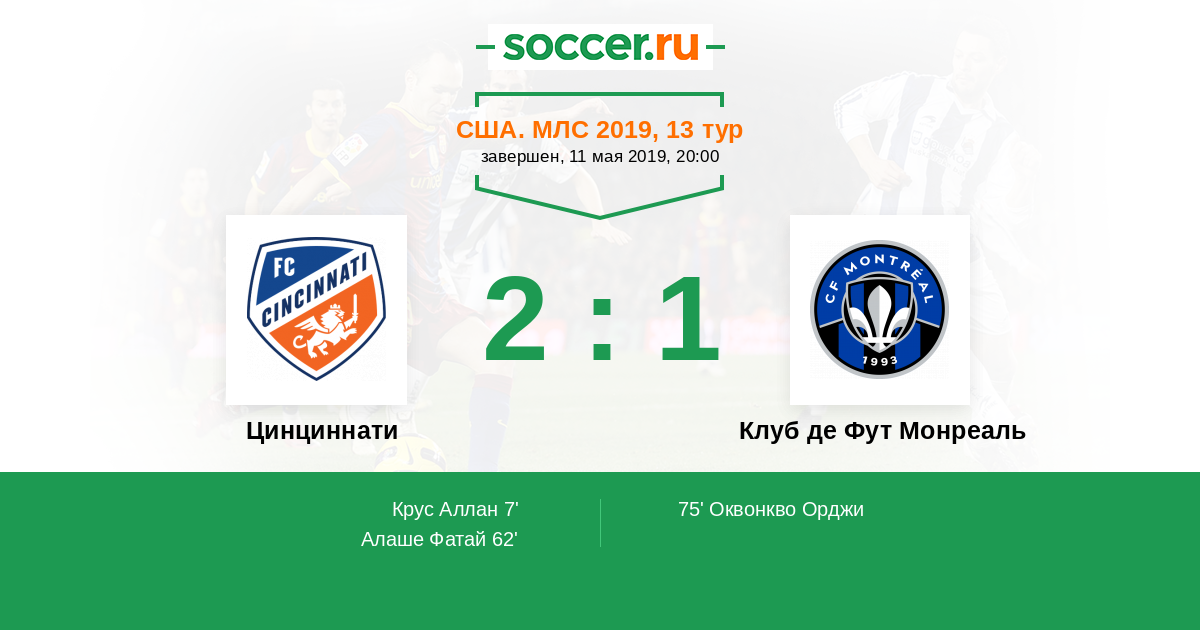Протокол матча Цинциннати против Клуб де Фут Монреаль