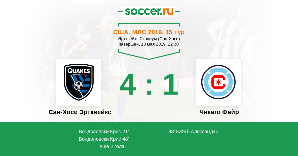 Протокол матча Сан-Хосе Эртквейкс против Чикаго Файр
