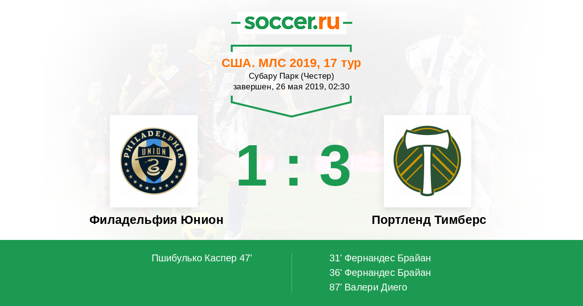 Протокол матча Филадельфия Юнион против Портленд Тимберс