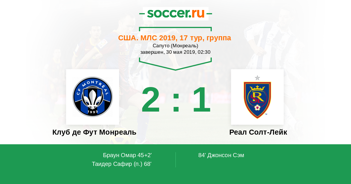 Протокол матча Клуб де Фут Монреаль против Реал Солт-Лейк