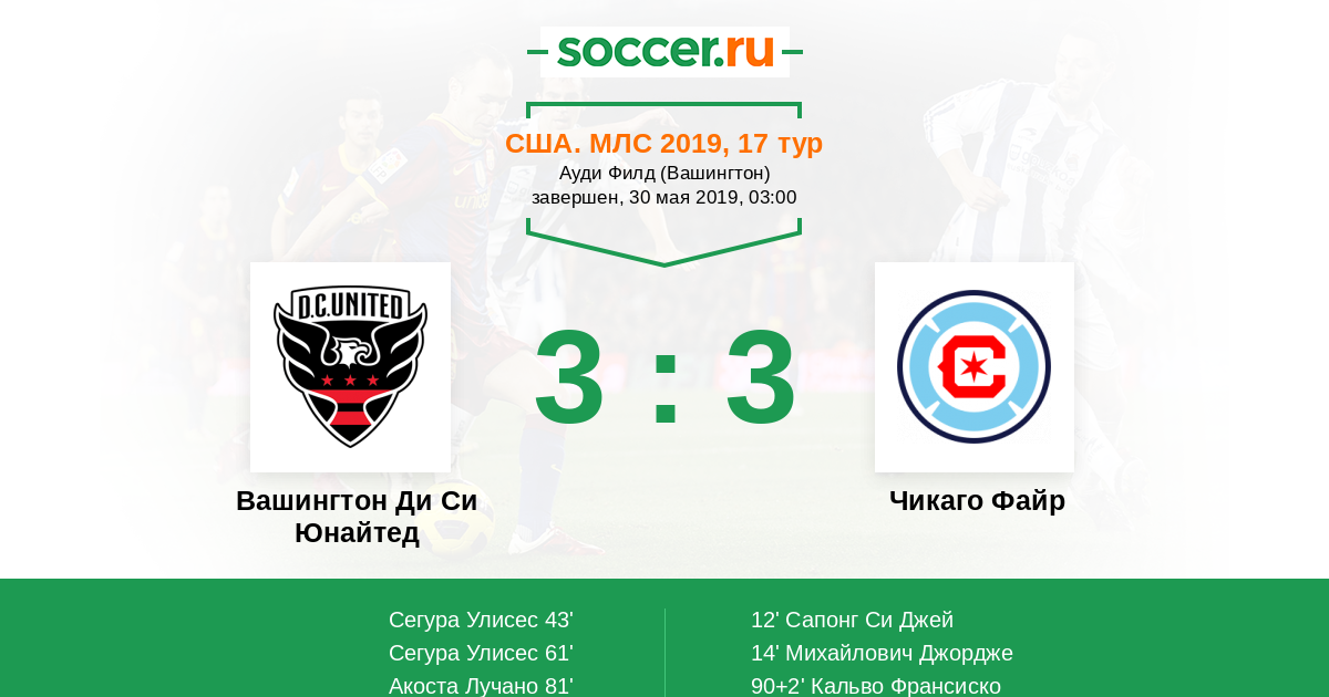 Протокол матча Вашингтон Ди Си Юнайтед против Чикаго Файр